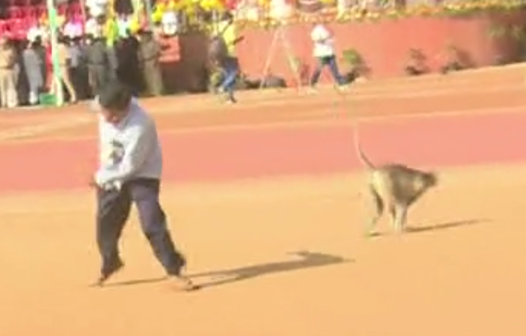 ಅದೇ ರೀತಿ ಗದಗ ಜಿಲ್ಲೆಯ ಜಿಲ್ಲಾ ಕ್ರೀಡಾಂಗಣದಲ್ಲಿ ನಡೆದ ಕನ್ನಡ ರಾಜ್ಯೋತ್ಸವ ಧ್ವಜಾರೋಹಣ ಕಾರ್ಯಕ್ರಮವನ್ನು ಆಯೋಜಿಸಲಾಗಿತ್ತು. ಆದ್ರೆ ಕಾರ್ಯಕ್ರಮ ಮಧ್ಯೆ ಕೋತಿಯೊಂದು ಏಕಾಏಕಿ ಎಂಟ್ರಿ ನೀಡಿ, ಎಲ್ಲರನ್ನು ಬೆಚ್ಚಿಬೀಳುವಂತೆ ಮಾಡಿದೆ.