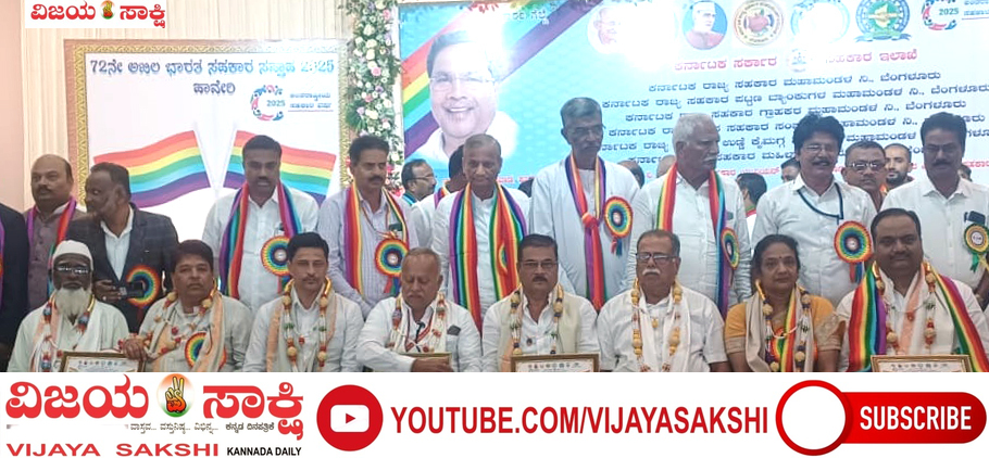 ಇತ್ತೀಚೆಗೆ ಹಾವೇರಿಯ ರಜನಿ ಸಭಾಂಗಣದಲ್ಲಿ ಜರುಗಿದ ಅಖಿಲ ಭಾರತ ಸಹಕಾರ ಸಪ್ತಾಹ-2025ರ ‘ಆತ್ಮ ನಿರ್ಭರ ಭಾರತ ಸಾಧನೆಗೆ ವಾಹಕಗಳಾಗಿ ಸಹಕಾರ ಸಂಸ್ಥೆಗಳು’ ಧ್ಯೇಯದ ಕಾರ್ಯಕ್ರಮದಲ್ಲಿ ಅತಿಥಿ ಗಣ್ಯಮಾನ್ಯರ ಉಪಸ್ಥಿತಿಯಲ್ಲಿ ಜರುಗಿದ ಕಾರ್ಯಕ್ರಮದಲ್ಲಿ ಬ್ಯಾಂಕ್ಗೆ ಗೌರವ ಸಲ್ಲಿಸಲಾಯಿತು.