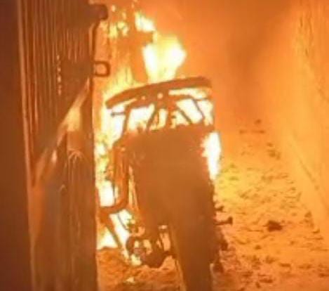 ಬೆಂಗಳೂರು:- ಬಸವೇಶ್ವರ ನಗರದ ಶಿವನಹಳ್ಳಿ 1ನೇ ಕ್ರಾಸ್ ಬಳಿ ಮನೆಯ ಬೇಸ್ಮೆಂಟ್ನಲ್ಲಿ ಚಾರ್ಜ್ಗೆ ಹಾಕಿದ್ದ ಎಲೆಕ್ಟ್ರಿಕ್ ಬೈಕ್ ಸ್ಫೋಟಗೊಂಡು ಬೆಂಕಿ ಹತ್ತಿದೆ.
