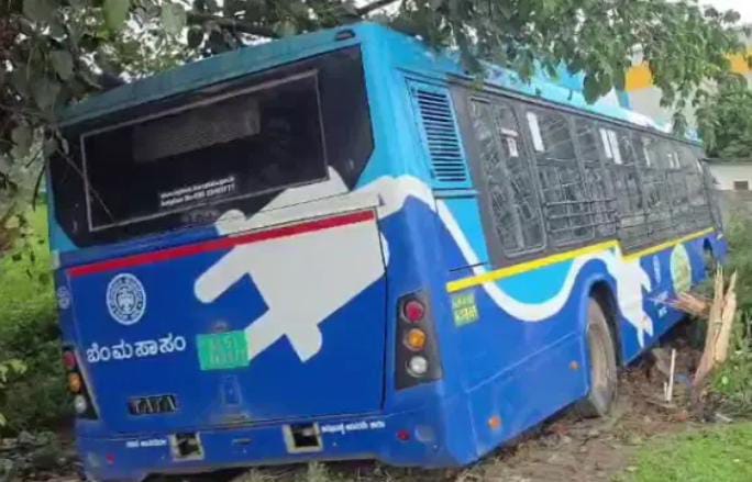 ಆನೇಕಲ್:- ಬೆಂಗಳೂರು ಹೊರವಲಯ ಜಿಗಣಿ ಸಮೀಪದ ಹರಪ್ಪನಹಳ್ಳಿ ಬಳಿ ಬ್ರೇಕ್ ಫೇಲ್ ಆಗಿ ರಸ್ತೆ ಬದಿಯ ಕಂದಕಕ್ಕೆ ಬಿಎಂಟಿಸಿ ಬಸ್ ನುಗ್ಗಿದ ಘಟನೆ ಜರುಗಿದೆ.