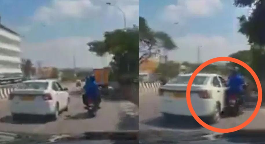 ಎಸ್, ಸೈಡ್ ಕೊಡದಿದ್ದಕ್ಕೆ ಬೈಕ್ಗೆ ಕಾರು ಗುದ್ದಿಸಿ ಕ್ಯಾಬ್ ಚಾಲಕ ಪುಂಡಾಟ ತೋರಿದ್ದಾನೆ. ಸೈಡ್ ಕೊಡುವ ವಿಚಾರಕ್ಕೆ ಕ್ಯಾಬ್ ಚಾಲಕ ಹಾಗೂ ಬೈಕ್ ಸವಾರನ ನಡುವೆ ಮಾತಿನ ಚಕಮಕಿ ನಡೆದಿದೆ. ಬಳಿಕ ಸ್ವಲ್ಪ ಮುಂದೆ ಬಂದು ಬೈಕ್ ಸವಾರ ಪ್ರಶ್ನೆ ಮಾಡಿದ್ದಾನೆ. ಈ ವೇಳೆ ಕ್ಯಾಬ್ ಚಾಲಕ ಕಾರಿನಲ್ಲಿ ಬೈಕ್ಗೆ ಗುದ್ದಿಸಿ ಸವಾರನನ್ನು ಬೀಳಿಸಿದ್ದಾನೆ.