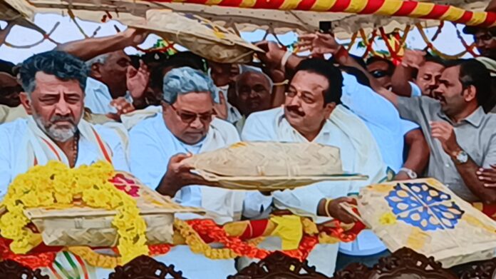 ಮಂಡ್ಯ: ಕೆಆರ್ಎಸ್ ಜಲಾಶಯ ಜೂನ್ ತಿಂಗಳಲ್ಲಿ ಸಂಪೂರ್ಣವಾಗಿ ಭರ್ತಿ ಆಗುವ ಮೂಲಕ 93 ವರ್ಷಗಳ ಇತಿಹಾಸದಲ್ಲಿ ಐತಿಹಾಸಕ ದಾಖಲೆ ಬರೆದಿದೆ. ಅದರಂತೆ ಸಿಎಂ ಸಿದ್ದರಾಮಯ್ಯ ಅವರು ಕೂಡ ಕಾವೇರಿ ಮಾತೆಗೆ ಬಾಗಿನ ಅರ್ಪಣೆ ಮಾಡುವ ಮೂಲಕ ದಾಖಲೆ ಬರೆದಿದ್ದಾರೆ. ಹೌದು ಇಂದು ಸಿಎಂ ಸಿದ್ದರಾಮಯ್ಯ ಹಾಗೂ ಡಿಸಿಎಂ ಡಿಕೆ ಶಿವಕುಮಾರ್ ಬಾಗಿನ ಅರ್ಪಿಸಿದ್ದಾರೆ.