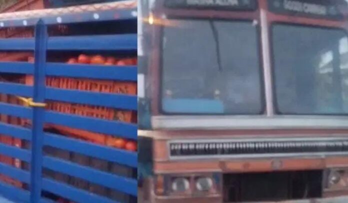 22 ವರ್ಷದ ಸುಮಂತ್, 16 ವರ್ಷದ ನಿತಿನ್ ಕುಮಾರ್ ಸಾವನ್ನಪ್ಪಿದ ದುರ್ದೈವಿಗಳು. ಲಾರಿಗೆ ಟೊಮ್ಯಾಟೊ ತುಂಬಿಕೊಂಡು ಹೋಗುತ್ತಿದ್ದ ಆಟೋ ಡಿಕ್ಕಿ ಹೊಡೆದಿದೆ. ಅಪಘಾತವಾಗುತ್ತಿದ್ದಂತೆ ರಸ್ತೆಗೆ ಟೊಮ್ಯಾಟೊ ಬಾಕ್ಸ್ಗಳು ಚೆಲ್ಲಾಪಿಲ್ಲಿಯಾಗಿ ಬಿದ್ದಿವೆ.