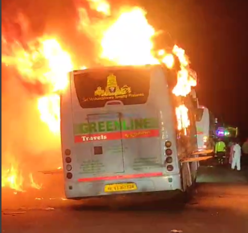 ಗ್ರೀನ್ ಲೈನ್ ಟ್ರಾವೆಲ್ಸ್ ಕಂಪನಿಗೆ ಸೇರಿದ ಈ ಬಸ್ ಬೆಂಗಳೂರಿನಿಂದ ಅನಂತಪುರ ಹೈವೇ ಮೂಲಕ ರಾಯಚೂರಿಗೆ ತೆರಳುತ್ತಿದ್ದಾಗ, ಟಯರ್ ಬ್ಲಾಸ್ಟ್ ಆಗಿ ಏಕಾಏಕಿ ಬೆಂಕಿ ಹೊತ್ತಿಕೊಂಡಿದೆ. ಬ್ಲಾಸ್ಟ್ ಆಗುತ್ತಿದ್ದಂತೆ ಪ್ರಯಾಣಿಕರು ತಮ್ಮ ಲಗೇಜ್ಗಳನ್ನೂ ಬಿಟ್ಟು ಬಸ್ನಿಂದ ಜಿಗಿದಿದ್ದಾರೆ.