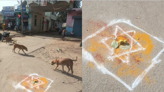 ಗದಗ ತಾಲೂಕಿನ ಲಕ್ಕುಂಡಿ ಗ್ರಾಮದ ದಾನಚಿಂತಾಮಣಿ ಅತ್ತಿಮಬ್ಬೆ ಮಹಾದ್ವಾರ ಬಳಿ ದುಷ್ಕರ್ಮಿಗಳಿಂದ ವಾಮಾಚಾರ ನಡೆದಿದೆ. ನಕ್ಷತ್ರ ಆಕಾರದಲ್ಲಿ ರಂಗೋಲಿ ಬಿಡಿಸಿ ಮಂಗಳ ಕುಂಡ ರಚಿಸಿ ನಿಂಬೆಹಣ್ಣು ಹಾಕಿದ್ದಾರೆ.