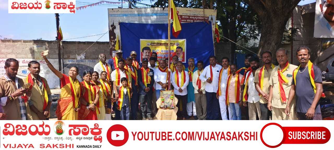 ವಿಜಯಸಾಕ್ಷಿ ಸುದ್ದಿ, ಗದಗ: ಕರ್ನಾಟಕ ರಕ್ಷಣಾ ವೇದಿಕೆಯ ಶಿವರಾಮೇಗೌಡ್ರ ಬಣ ಗದಗ ಜಿಲ್ಲಾ ಘಟಕದ ನೇತೃತ್ವದಲ್ಲಿ ದಲಿತಪರ, ಕನ್ನಡಪರ, ಹಿಂದೂಪರ, ವಿವಿಧ ಜನಪರ ಹೋರಾಟಗಾರರ ಮುಂದಾಳತ್ವದಲ್ಲಿ ನಗರದ ಗಾಂಧಿ ವೃತ್ತದಲ್ಲಿ ಕನ್ನಡ ಧ್ವಜಾರೋಹಣ ಮಾಡುವ ಮೂಲಕ ಕನ್ನಡ ರಾಜ್ಯೋತ್ಸವ ಆಚರಿಸಲಾಯಿತು.