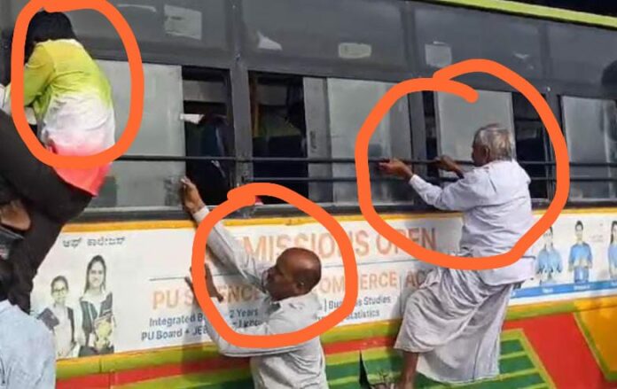 ಇದು ಗ್ಯಾರಂಟಿ ಎಫೆಕ್ಟ್: ಸೀಟ್‌ಗಾಗಿ ಕಿಟಕಿಗಳ ಮೂಲಕ ಹತ್ತುತ್ತಿರುವ ಪ್ರಯಾಣಿಕರು