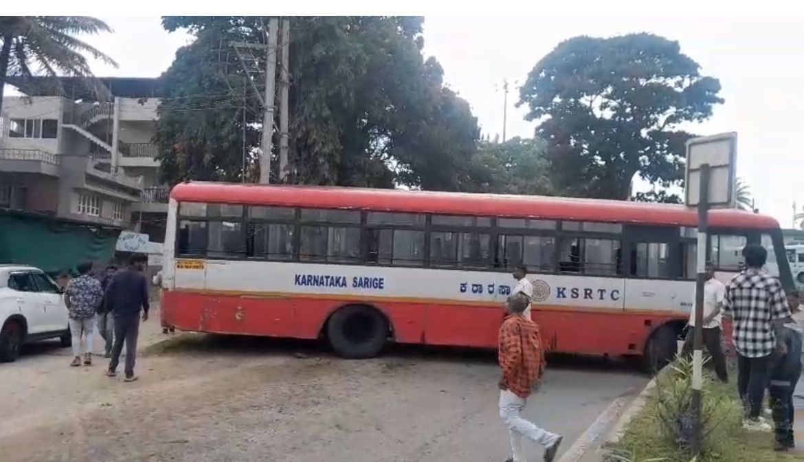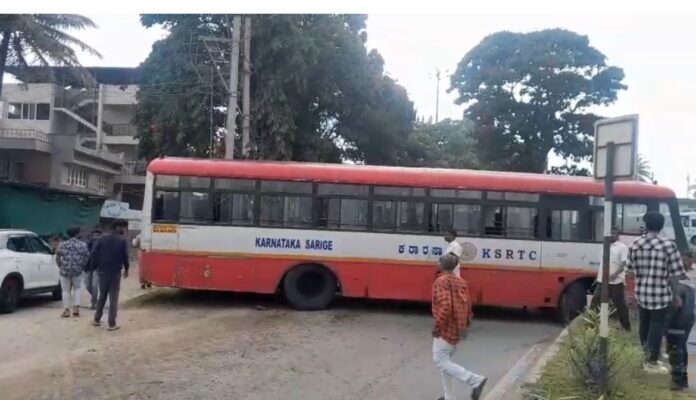 ಚಿಕ್ಕಮಗಳೂರು: ಚಿಕ್ಕಮಗಳೂರು ನಗರದ ಬೇಲೂರು ರಸ್ತೆಯ ಕೋಟೆ ಬಳಿ ಕೆಎಸ್ಆರ್ಟಿಸಿ ಬಸ್ಸಿನ ಅಕ್ಸಲ್ ತುಂಡಾದ ಪರಿಣಾಮ ನಿಯಂತ್ರಣ ತಪ್ಪಿ ಡಿವೈಡರ್ ಹಾಗೂ ರಸ್ತೆ ಬದಿಯ ವಿದ್ಯುತ್ ಟ್ರಾನ್ಸ್ಫಾರ್ಮರ್ ಗೆ ಡಿಕ್ಕಿ ಹೊಡೆದ ಘಟನೆ ನಡೆದಿದೆ.