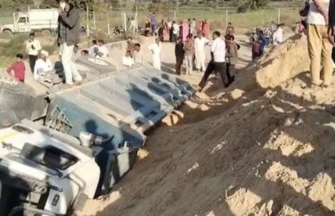 ಗಾಂಧಿನಗರ:- ಗುಜರಾತ್ನ ಬನಸ್ಕಂತ ಜಿಲ್ಲೆಯ ಥರಡ್ ರಾಷ್ಟ್ರೀಯ ಹೆದ್ದಾರಿಯಲ್ಲಿ ಭೀಕರ ಅಪಘಾತ ಸಂಭವಿಸಿದೆ. ಮರಳು ತುಂಬಿದ್ದ ಲಾರಿ ಪಲ್ಟಿಯಾದ ಪರಿಣಾಮ ರಸ್ತೆಬದಿ ಕೆಲಸ ಮಾಡುತ್ತಿದ್ದ ಮೂವರು ಮಹಿಳೆಯರು ಹಾಗೂ ಒಂದು ಮಗು ದಾರುಣವಾಗಿ ಸಾವನ್ನಪ್ಪಿದ ಘಟನೆ ಜರುಗಿದೆ.