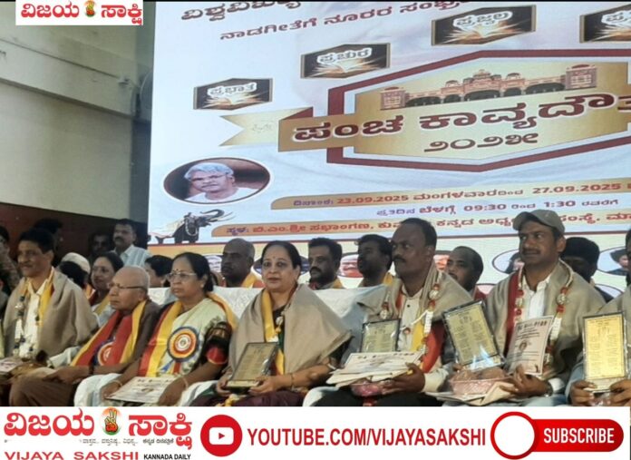 ವಿಜಯಸಾಕ್ಷಿ ಸುದ್ದಿ, ಗದಗ: ಸಮೀಪದ ಹುಲಕೋಟಿ ಗ್ರಾಮದ ಪ್ರಸಿದ್ಧ ಶಾಯರಿ ಕವಿ ಮರುಳಸಿದ್ದಪ್ಪ ದೊಡ್ಡಮನಿ ವಿಶ್ವವಿಖ್ಯಾತ ಮೈಸೂರು ದಸರಾದ ಪ್ರಬುದ್ಧ ಕವಿಗೋಷ್ಠಿಯಲ್ಲಿ ಭಾಗವಹಿಸಿ ಕವಿಗೋಷ್ಠಿಯಲ್ಲಿ ಗದಗ ಜಿಲ್ಲೆಗೆ ಕೀರ್ತಿ ತಂದಿದ್ದಾರೆ. ಪಂಚ ಕಾವ್ಯದೌತಣ ಕವಿಗೋಷ್ಠಿಯಲ್ಲಿ ತಮ್ಮ ಕವನ ವಾಚಿಸುವ ಮೂಲಕ ಎಲ್ಲರ ಗಮನ ಸೆಳೆದರು.