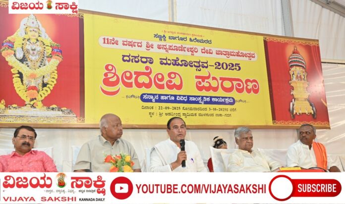 ನಗರದ ಮುಳಗುಂದನಾಕಾ ಬಳಿಯ ಶ್ರೀ ಅಡವೀಂದ್ರಸ್ವಾಮಿ ಮಠದಲ್ಲಿ 45ನೇ ವರ್ಷದ ದಸರಾ ಮಹೋತ್ಸವ ಮತ್ತು ಶ್ರೀದೇವಿ ಪುರಾಣ ಪ್ರವಚನ ಕಾರ್ಯಕ್ರಮದ ಸಾನ್ನಿಧ್ಯ ವಹಿಸಿ ಅವರು ಮಾತನಾಡಿದರು.