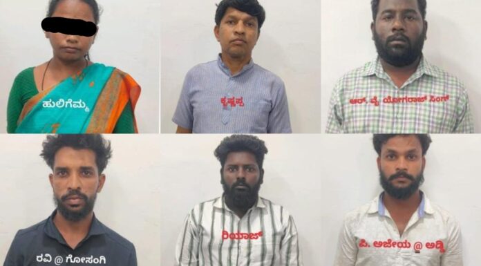 ವಿಜಯನಗರ:- ವಿಮೆ ಹಣಕ್ಕಾಗಿ ಸಿನಿಮೀಯ ರೀತಿಯಲ್ಲಿ ಕೊಲೆ ಮಾಡಿ ಬಳಿಕ ಖದೀಮರು ನಕಲಿ ಹೆಂಡತಿ ಸೃಷ್ಟಿ ಮಾಡಿ ಪೊಲೀಸರ ಬಲೆಗೆ ಬಿದ್ದಿರುವ ಘಟನೆ ಹೊಸಪೇಟೆಯ ಪಟ್ಟಣ ಪೊಲೀಸ್ ಠಾಣೆ ವ್ಯಾಪ್ತಿಯಲ್ಲಿ ಜರುಗಿದೆ.ಹೊಸಪೇಟೆ ನಗರದ ಕೌಲ್ ಪೇಟೆ ನಿವಾಸಿ ಗಂಗಾಧರ ಮೃತ ವ್ಯಕ್ತಿ. 5 ಕೋಟಿ 20 ಲಕ್ಷದ ರೂ ಇನ್ಶುರೆನ್ಸ್ ಹಣಕ್ಕೆ ದುರಳರು ಈ ಕೊಲೆ ಮಾಡಿದ್ದಾರೆ. ತೆಲುಗು ನಟ ನಾಗರ್ಜುನ್ ನಟನೆಯ ಕುಬೇರ ಸಿನಿಮಾದಲ್ಲಿ ಬ್ಲಾಕ್ ಮನಿ, ವೈಟ್ ಮಾಡಲು ಅಲ್ಲಿ ಭಿಕ್ಷುಕರ ಮರ್ಡರ್ ಮಾಡಿದ್ರೆ, ಇಲ್ಲಿ ಇನ್ಶುರೆನ್ಸ್ ಹಣಕ್ಕಾಗಿ ಕಿರಾತಕರು ಅಮಾಯಕನ ಕೊಲೆ ಮಾಡಿ ಇದೀಗ ಖಾಕಿ ಬಲೆಗೆ ಬಿದ್ದಿದ್ದಾರೆ. ಕೊಲೆ ಮಾಡಿ ಅಪಘಾತ ಅಂತ ಬಿಂಬಿಸಲು ಹೋಗಿದ್ದ ಗ್ಯಾಂಗ್ ಇದೀಗ ಖಾಕಿಗೆ ಸಿಕ್ಕಿಬಿದ್ದಿದ್ದಾರೆ.ಘಟನೆ ನಡೆದಿದ್ದು ಹೇಗೆ?ಮೊದಲಿಗೆ ಹೊಸಪೇಟೆಯ ಹೊರವಲಯದ ಸಂಡೂರು ರಸ್ತೆಯಿಂದ HLC ಕಾಲುವೆಯ ಮೂಲಕ ಜಂಬುನಾಥ ಹಳ್ಳಿಗೆ ಹೋಗುವ ರಸ್ತೆಯಲ್ಲಿ ಗಂಗಾಧರನನ್ನು ಕೊಲೆ ಮಾಡಿ ಬಳಿಕ ಎಕ್ಸೆಲ್ ಬೈಕ್ ಮೇಲೆ ಕೂರಿಸಿ ಕಾರಿನಿಂದ ಗುದ್ದಿ ಪರಾರಿ ಆಗಿದ್ದಾರೆ.ಖದೀಮರು ಮೃತ ಗಂಗಾಧರ್ ಹೆಸರಲ್ಲಿ 5 ಕೋಟಿ, 20 ಲಕ್ಷ ಇನ್ಶುರೆನ್ಸ್ ಮಾಡಿಸಿದ್ದರು ಎಂದು ತಿಳಿದು ಬಂದಿದೆ. ಕೊಲೆಯಾದ ಗಂಗಾಧರನ ಹೆಂಡತಿ ಶಾರದಾ ನೀಡಿದ ದೂರಿನ ಮೇಲೆ ಹೊಸಪೇಟೆಯ ಪಟ್ಟಣ ಪೊಲೀಸ್ ಠಾಣೆಯಲ್ಲಿ ಪ್ರಕರಣ ದಾಖಲಾಗಿತ್ತು. ಪೊಲೀಸರು ದೂರು ದಾಖಲಿಸಿದ 24 ಗಂಟೆಯಲ್ಲೇ ಪ್ರಕರಣ ಭೇದಿಸಿದ್ದಾರೆ. ಓರ್ವ ಮಹಿಳೆ ಸೇರಿದಂತೆ 6 ಜನರನ್ನು ಅರೆಸ್ಟ್ ಮಾಡಿದ್ದಾರೆ.ಬಂಧಿತ ಆರೋಪಿಗಳನ್ನು ಕೊಪ್ಪಳ ಜಿಲ್ಲೆಯ ಗಂಗಾವತಿ ನಿವಾಸಿ ಕೃಷ್ಣಪ್ಪ, ಕೊಪ್ಪಳ ಜಿಲ್ಲೆಯ ಹೊಸಲಿಂಗಾಪುರ ಗ್ರಾಮದ ನಿವಾಸಿ ರವಿ ಗೋಸಂಗಿ, ವಿಜಯನಗರ ಜಿಲ್ಲೆಯ ಹೊಸಪೇಟೆ ನಿವಾಸಿಗಳಾದ ಅಜೆಯ, ರಿಯಾಜ್, ಯೋಗರಾಜ್ ಸಿಂಗ್, ನಕಲಿ ಹೆಂಡತಿ ಹುಲಿಗೆಮ್ಮ ಎಂದು ಗುರುತಿಸಲಾಗಿದೆ.ಬಂಧಿತರಿಂದ ಕೃತ್ಯಕ್ಕೆ ಬಳಸಿದ ಕಾರು, ಬೈಕ್ ವಶಕ್ಕೆ ಸೀಜ್ ಮಾಡಲಾಗಿದೆ. ಹೊಸಪೇಟೆ ವಿಭಾಗದ ಡಿವೈಎಸ್ಪಿ ಡಾ. ಮಂಜುನಾಥ ತಳವಾರ ಮಾರ್ಗದರ್ಶನದಲ್ಲಿ ಸಂಚಾರಿ ಠಾಣೆ ಸಿಪಿಐ ಹುಲಗಪ್ಪ, ಹೊಸಪೇಟೆ ನಗರ ಠಾಣೆ ಸಿಪಿಐ ಲಖನ್ ಮುಸಗುಪ್ಪಿ ತಂಡದ ಪೊಲೀಸರ ಕಾರ್ಯಕ್ಕೆ ಪ್ರಶಂಸೆ ವ್ಯಕ್ತಪಡಿಸಿ ವಿಜಯನಗರ ಎಸ್ಪಿ ಎಸ್. ಜಾಹ್ನವಿ ಬಹುಮಾನ ಘೋಷಿಸಿದ್ದಾರೆ.