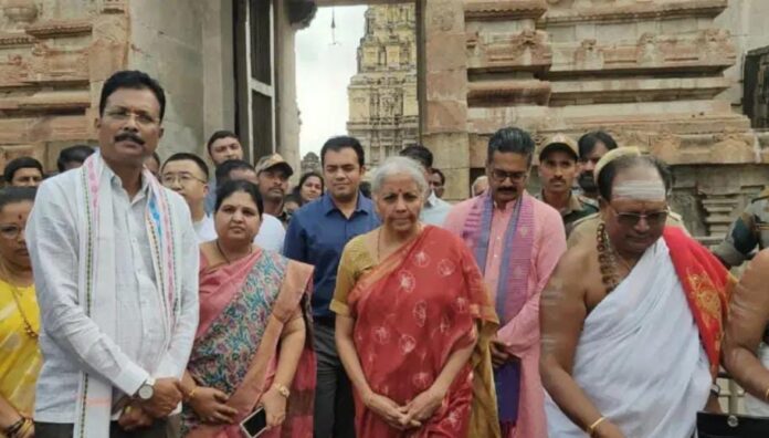 ವಿಜಯನಗರ: ಕೇಂದ್ರ ವಿತ್ತ ಸಚಿವೆ ನಿರ್ಮಲಾ ಸೀತಾರಾಮನ್ ಅವರು ರಾಜ್ಯ ಪ್ರವಾಸದ ವೇಳೆ ಹಂಪಿಯ ವಿರುಪಾಕ್ಷೇಶ್ವರ ದೇವಾಲಯಕ್ಕೆ ಭೇಟಿ ನೀಡಿ ದರ್ಶನ ಪಡೆದರು. ದೇವರ ಆಶೀರ್ವಾದ ಪಡೆದ ಬಳಿಕ, ಅವರು ದೇಶದ ಕ್ಷೇಮಕ್ಕಾಗಿ ವಿಶೇಷ ಪೂಜೆ ಸಲ್ಲಿಸಿದರು. ಈ ವೇಳೆ ಆನೆ ಲಕ್ಷ್ಮಿಯು ಅವರಿಗೆ ಹೂವಿನ ಹಾರ ಹಾಕಿ ಸ್ವಾಗತಿಸಿತು.