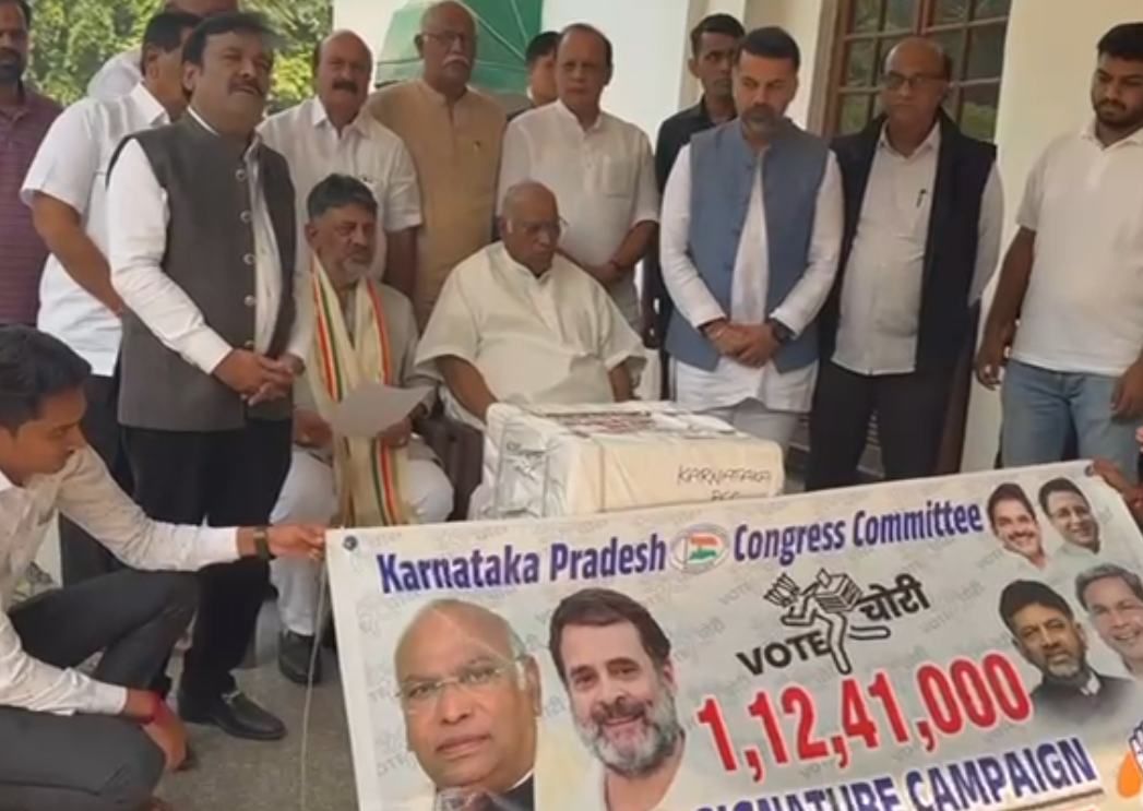 ನವದೆಹಲಿ: ಮತ ಕಳ್ಳತನ ವಿರುದ್ಧದ ಸಹಿ ಸಂಗ್ರಹ ಅಭಿಯಾನವನ್ನು ಕರ್ನಾಟಕದಲ್ಲಿ ಯಶಸ್ವಿಯಾಗಿ ಪೂರ್ಣಗೊಳಿಸಲಾಗಿದ್ದು, ಕೆಪಿಸಿಸಿ ಅಧ್ಯಕ್ಷರಾದ ಡಿಸಿಎಂ ಡಿ.ಕೆ. ಶಿವಕುಮಾರ್ ಅವರು ರಾಜ್ಯದಲ್ಲಿ ಸಂಗ್ರಹಿಸಲಾದ 1,12,41,000 ಸಹಿಗಳ ದಾಖಲೆಗಳನ್ನು ಎಐಸಿಸಿಗೆ ಸಲ್ಲಿಸಿದರು.