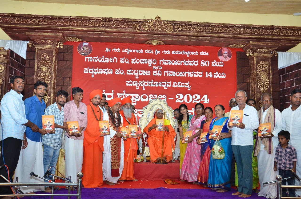 ಗದಗ ನಗರದ ವೀರೇಶ್ವರ ಪುಣ್ಯಾಶ್ರಮದಲ್ಲಿ ಪಂ. ಪಂಚಾಕ್ಷರ ಗವಾಯಿಗಳವರ 80ನೇ ಹಾಗೂ ಪಂ.ಪುಟ್ಟರಾಜ ಕವಿಗವಾಯಿಗಳವರ 14ನೇ ಪುಣ್ಯಸ್ಮರಣೋತ್ಸವದ ಅಂಗವಾಗಿ ಪಂ. ಪುಟ್ಟರಾಜ ಕವಿ ಗವಾಯಿಗಳವರು ರಚಿಸಿದ ಶ್ರೀ ಗುರು ವಚನ ಪ್ರಭ, ಶ್ರೀ ಮಹಾದೇವಿ ಪುರಾಣಂ ಗ್ರಂಥಗಳನ್ನು ಹಾಗೂ ಪೂಜ್ಯಶ್ರೀ ಕಲ್ಲಯ್ಯಜ್ಜನವರು ಸಾಹಿತ್ಯ ರಚಿಸಿದ ಶಿವಯೋಗಿ ಸಂತ ಪುಟ್ಟಯ್ಯಜ್ಜ ಧ್ವನಿ ಸುರುಳಿಯನ್ನು ಕಾಶಿ ಪೀಠದ ಪೂಜ್ಯ ಶ್ರೀ ಡಾ. ಚಂದ್ರಶೇಖರ ಶಿವಾಚಾರ್ಯ ಭಗವತ್ಪಾಗಳವರು ಲೋಕಾರ್ಪಣೆಗೊಳಿಸಿದರು.