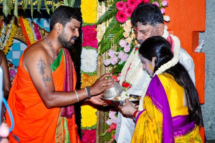 ಹಾಸನ: ರಾಜ್ಯ ಹಾಗೂ ಹಾಸನ ಜಿಲ್ಲೆಯಲ್ಲಿ ಶಾಂತಿ ಹಾಗೂ ನೆಮ್ಮದಿಯಿಂದ ಆಡಳಿತ ವ್ಯವಸ್ಥೆ ನಡೆಯುತ್ತಿದೆ. ಇದಕ್ಕೆ ಜನರ ಹಾಗೂ ತಾಯಿ ಹಾಸನಾಂಬೆಯ ಆಶೀರ್ವಾದ ಕಾರಣ. ತಾಯಿಯ ಆಶೀರ್ವಾದದಿಂದ ಎಲ್ಲರ ಆಶಯಗಳು ಈಡೇರಲಿ ಎಂದು ಬೇಡಿಕೊಳ್ಳುತ್ತೇನೆ” ಎಂದು ಡಿಸಿಎಂ ಡಿ.ಕೆ. ಶಿವಕುಮಾರ್ ಅವರು ಹೇಳಿದರು. ಮಂಗಳವಾರ ಸಂಜೆ ಕುಟುಂಬ ಸಮೇತರಾಗಿ ಹಾಸನಾಂಬ ದೇವಿಯ ದರ್ಶನ ಪಡೆದ ನಂತರ ಶಿವಕುಮಾರ್ ಅವರು ಮಾಧ್ಯಮಗಳನ್ನು ಉದ್ದೇಶಿಸಿ ಮಾತನಾಡಿದರು.