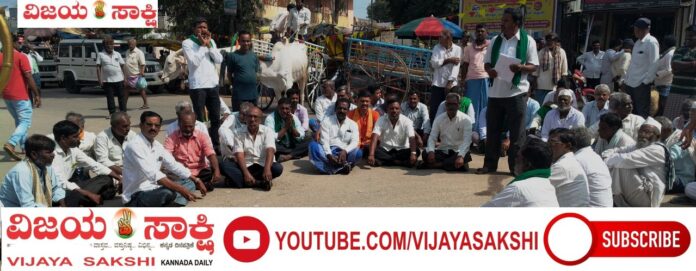 ಎತ್ತು ಚಕ್ಕಡಿಗಳೊಂದಿಗೆ ಮೆರವಣಿಗೆ ಪ್ರಾರಂಭಿಸಿದ ರೈತರು ಮೆರವಣಿಗೆಯುದ್ದಕ್ಕೂ ರೈತ ವಿರೋಧಿ ಸರ್ಕಾರಕ್ಕೆ ಧಿಕ್ಕಾರ ಕೂಗಿ ರಾಜ್ಯ ಸರ್ಕಾರದ ವಿರುದ್ಧ ತಮ್ಮ ಆಕ್ರೋಶವನ್ನು ಹೊರ ಹಾಕಿದರು. ಅರ್ಧ ಗಂಟೆಗೂ ಹೆಚ್ಚು ಕಾಲ ರಾಜ್ಯ ಹೆದ್ದಾರಿಯನ್ನು ಬಂದ್ ಮಾಡಿದ ರೈತರು ಸರ್ಕಾರದ ವಿರುದ್ಧದ ಘೋಷಣೆಗಳನ್ನು ಕೂಗುವುದನ್ನು ಮುಂದುವರೆಸಿದರು.