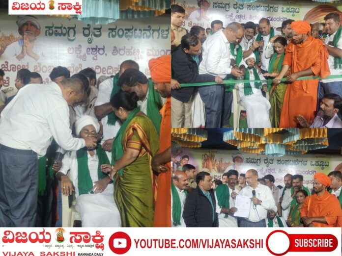 ವಿಜಯಸಾಕ್ಷಿ ಸುದ್ದಿ, ಲಕ್ಷ್ಮೇಶ್ವರ: ಲಕ್ಷ್ಮೇಶ್ವರನಲ್ಲಿ ಕಳೆದ 18 ದಿನಗಳಿಂದ ರೈತರು ನಡೆಸುತ್ತಿರುವ ಹೋರಾಟದ ಪರಿಣಾಮ ಸೋಮವಾರ ರಾತ್ರಿ ಜಿಲ್ಲಾಧಿಕಾರಿಗಳು ಸರ್ಕಾರದ ನಿಯಮಾವಳಿಯಂತೆ ಮೆಕ್ಕೆಜೋಳದ ಖರೀದಿ ಕೇಂದ್ರವನ್ನು ರೈತರ ಹೋರಾಟ ವೇದಿಕೆಯಲ್ಲಿಯೇ ಸಾಂಕೇತಿಕವಾಗಿ ಉದ್ಘಾಟಿಸಿದರು.